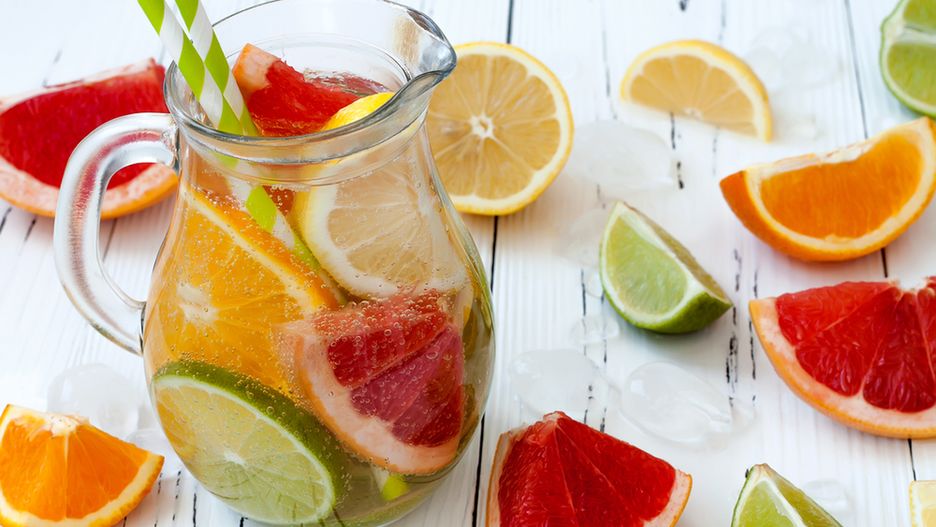 Nic tak nie orzeźwia organizmu jak woda. Jeśli jednak nie jesteś miłośnikiem niegazowanej wody mineralnej, wypróbuj tę z grejpfrutem i rozmarynem. Cząstki grejpfruta wyfiletuj, tzn. obierz ze skórki i pozbaw białej, gorzkiej błonki. Następnie wrzuć je do dużego dzbanka, dodaj kilka gałązek rozmarynu i zalej wodą z kostkami lodu. Przelewaj do słoików do picia, ozdabiając świeżą gałązką rozmarynu.