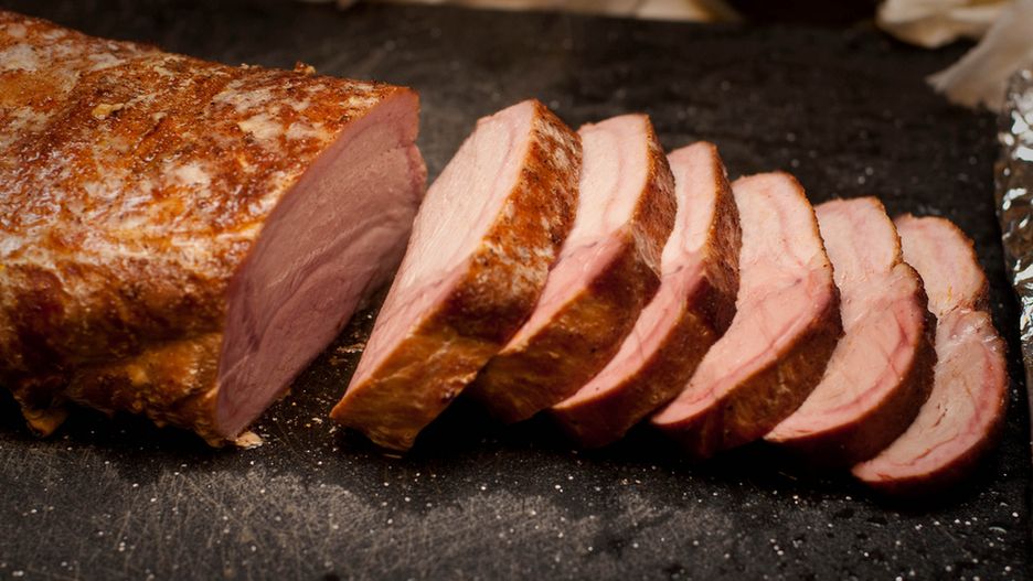 Całą peklowana szynka wieprzowa bez kości (mięso i tłuszcz) z dodatkiem naturalnego soku, na zimno