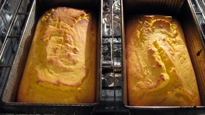 Chleb kukurydziany w proszku, przygotowany z użyciem 2% mleka, 80% margaryny i jajek
