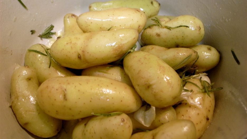 Gotowane mrożone w całości ziemniaki z dodatkiem soli, odsączone