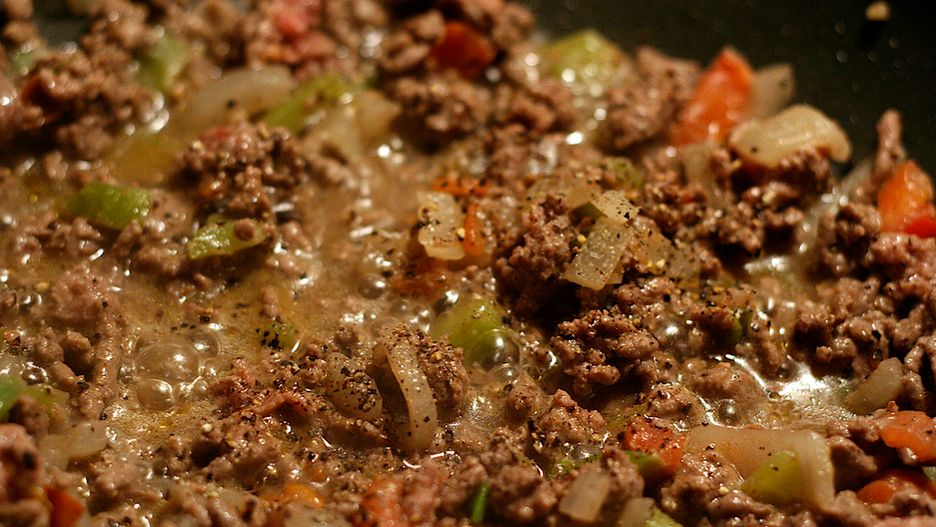 Grubo mielona wołowina (70% mięsa, 30% tłuszczu) zrumieniona na patelni