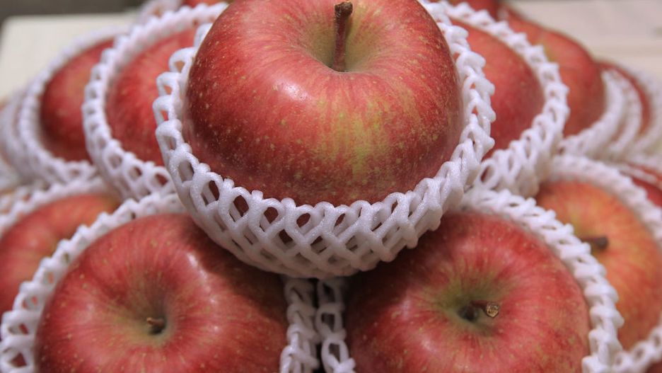 Jabłka Fuji to krzyżówka amerykańskich odmian Red Delicious oraz Ralls Genet. Została wyprodukowana w Stacji Badawczej Tohoku w mieście Fujisaki, skąd pochodzi nazwa owoców.