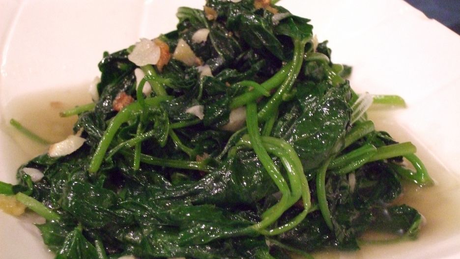 Liście batatów gotowane na parze bez dodatku soli