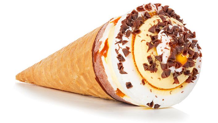 Lody w rożku o niskiej zawartości tłuszczu, bez dodatku cukru, z orzeszkami ziemnymi i sosem czekoladowym
