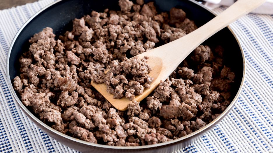 Mięso mielone z emu opiekane na patelni