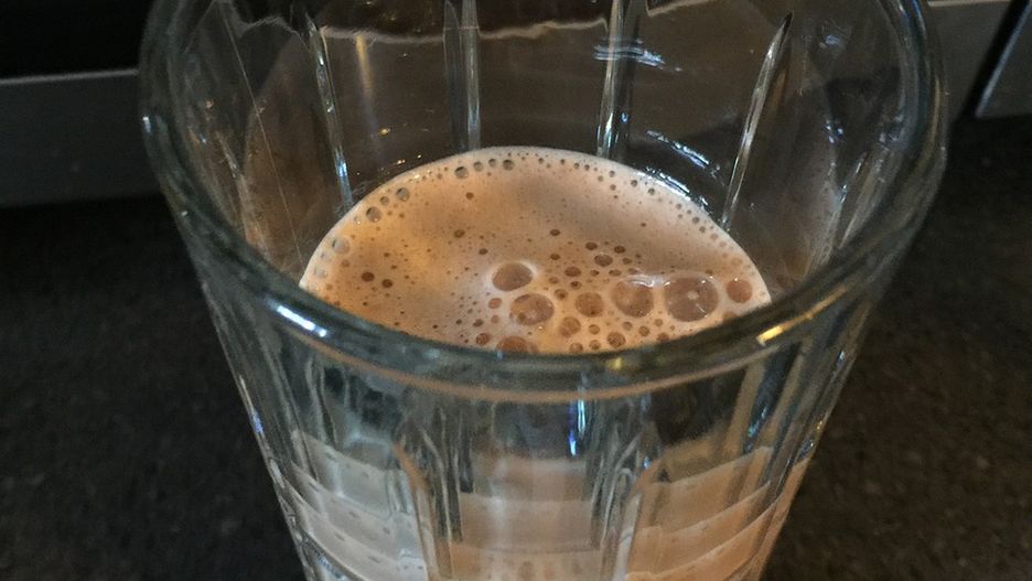 Napój o smaku czekoladowym w proszku z dodatkiem składników odżywczych przygotowany z mlekiem pełnotłustym