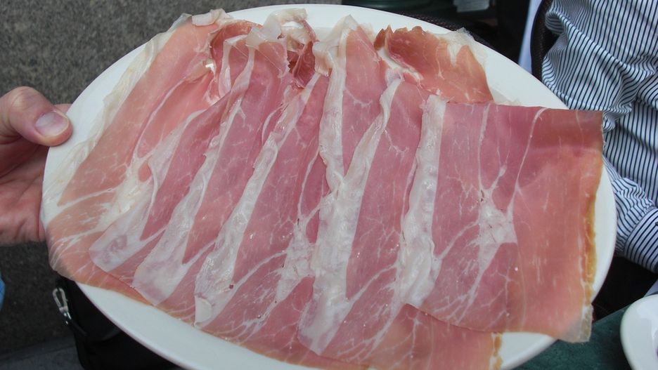 Peklowana cała szynka wieprzowa (mięso i tłuszcz), na zimno zawiera również witaminy z grupy B: