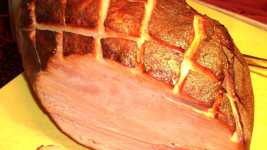 Peklowana cała szynka wieprzowa (tylko mięso), na zimno w 100 gramach posiada wartość energetyczną 147 kcal.
