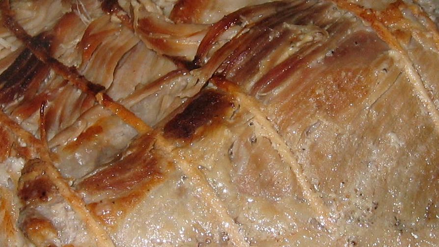 Pieczona polędwica wieprzowa z kością (mięso i tłuszcz)