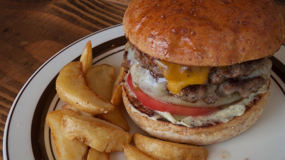 Powiększony podwójny hamburger z przyprawami, warzywami i majonezem – jakie ma witaminy?