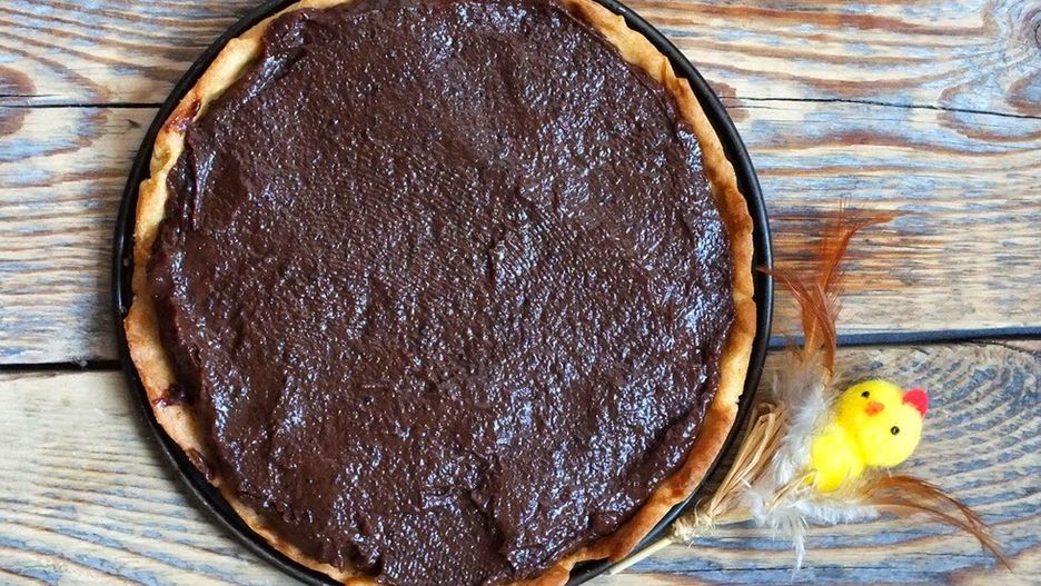 Składniki ciasta zagnieść, dodając tyle wody, by uzyskać zwartą i elastyczną konsystencję. Rozwałkować ciasto i wyłożyć nim formę, tworząc rant. Wstawić do piekarnika nagrzanego do 175 stopni C i piec, aż ciasto się zarumieni - ok. 20 minut. Śliwki namoczyć, pogotować 10 minut i zblenderować na mus. Przełożyć do rondelka, dodać karob i przesmażyć, by masa zgęstniała. Dosłodzić melasą, dodać wanilię, wymieszać, ewentualnie dodać bakalie i jeszcze ciepłą rozprowadzić na cieście. Udekorować według uznania.