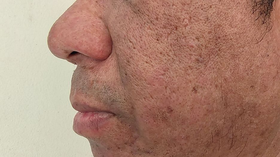 - trądzik różowaty na policzkach i brodzie,