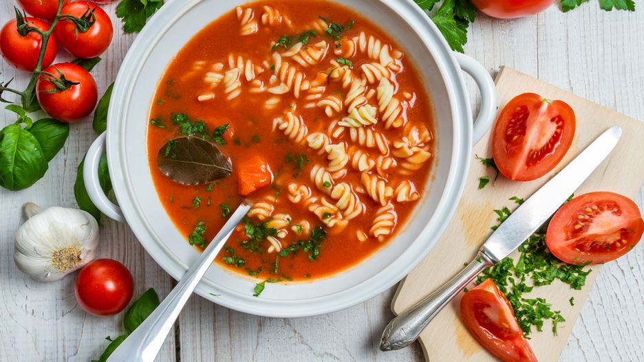 Zagęszczona zupa pomidorowa na wołowinie z makaronem (do kupienia gotowa do spożycia) – jakie ma witaminy?